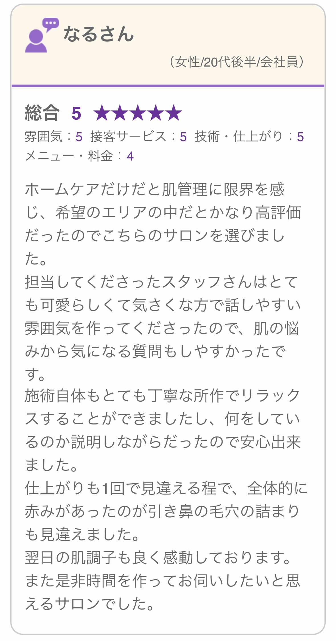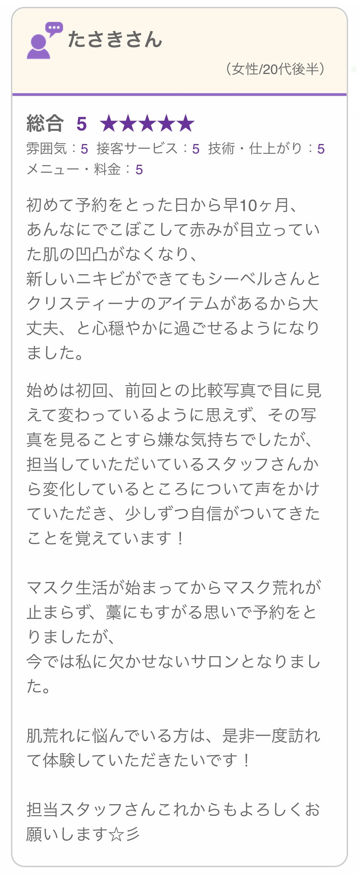 お客様のお悩みに寄り添い、肌質改善へ導きます