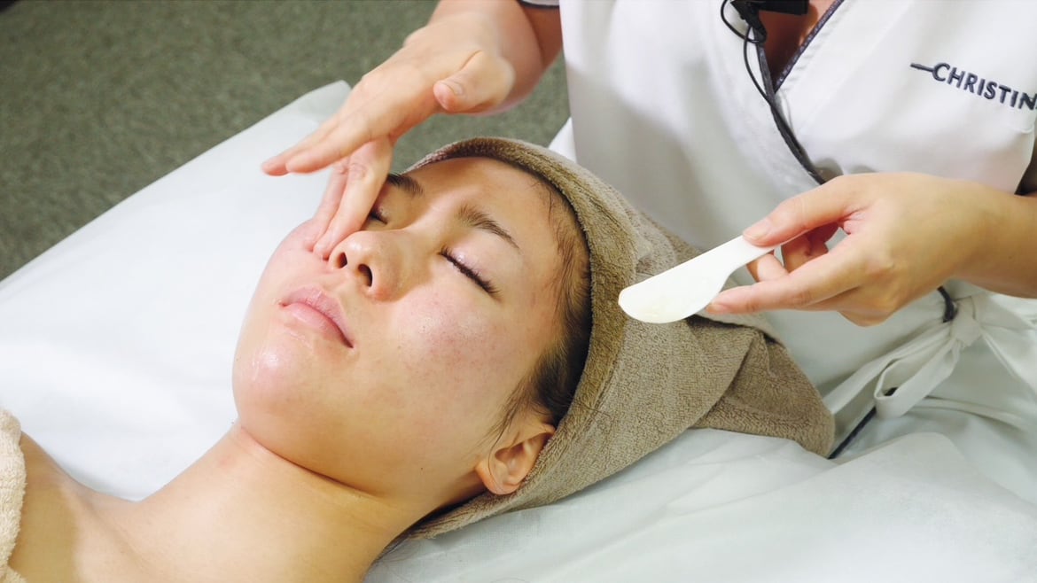 100%天然素材のシーハーバルディープピールとアクチベーターを混ぜ合わせ、ムース状にして使用します。オリジナルマッサージ法で、微細針を肌全体にむらなく刷り込みます。10分ほど放置して表面が乾いてきたら、スポンジを用いて拭き取ります。